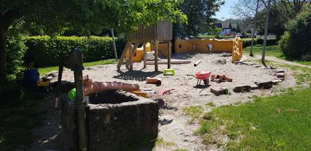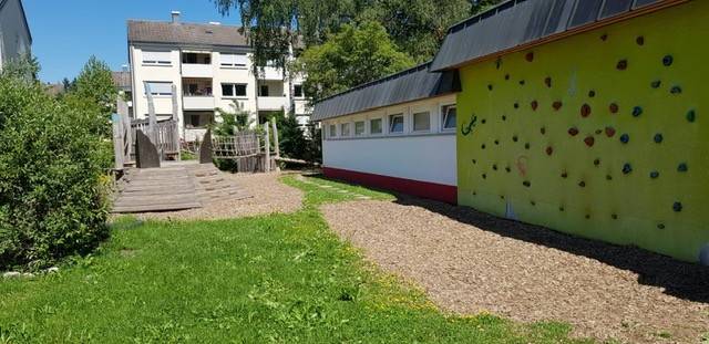 Hervorzuheben ist der große Garten mit vielen Spiel-, Bewegungs- und Experimentierbereichen, sowie der kindgerechte Wasch- und Toilettenraum, der auch viel Raum zum Experimentieren mit Wasser u.ä. bietet.