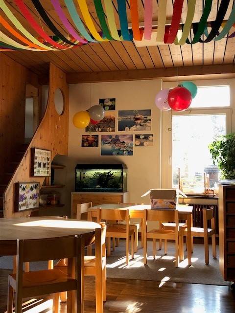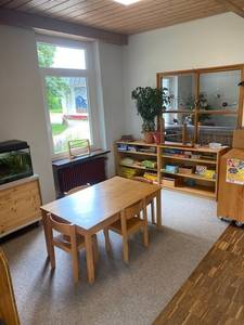 Unser großzügiges Raumangebot besteht aus 5 Gruppenräumen (3 mit Nebenräumen), Eingangshalle, Werkraum, Malraum, Bewegungsraum, Küche, Mitarbeiterraum, Büro und Sanitärräumen.